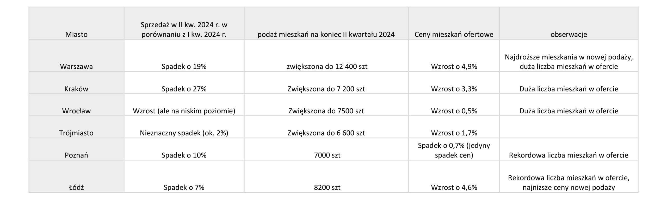 Drugi kwartał 2024 roku przyniósł znaczące zmiany na rynku mieszkaniowym. Brak programu dopłat do kredytów mieszkaniowych wpłynął na zachowanie nabywców, którzy wstrzymywali decyzje zakupowe. W efekcie, sprzedaż mieszkań spadła w porównaniu do poprzedniego kwartału, choć nie we wszystkich miastach spadek był znaczący.